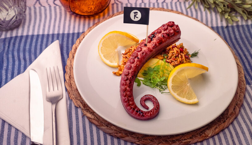 Because the meals are software controlled, it’s in the hands of the maker to design the food. Engineers can even integrate two different materials together, such as proteins and fats. With fish fillets, for example, the printers can produce the typical ‘flakiness’ often seen in the traditional ones. ‘It’s because the fat is integrated into the protein. When heated, it melts up a bit, which creates the texture,’ Robin Simsa tells designboom. Having to use software and digital tools also allows for design freedom. At one point, Revo Foods printed fish shaped like tennis rackets and sets of balls. The CEO says this shows the kind of flexibility the technology offers to the food industry.