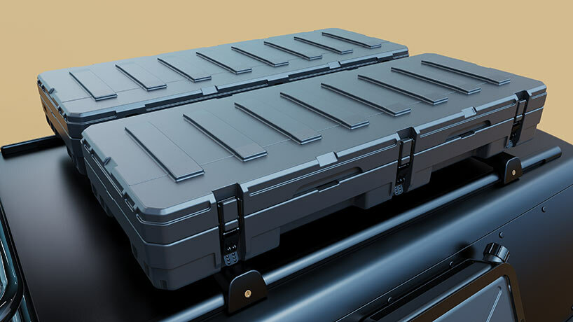 two roof-mounted cases provide a versatile storage solution for carrying outdoor gear
