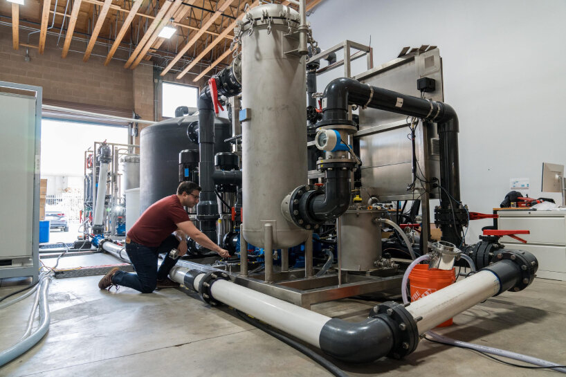 ‘Less than 1% of this water is diverted and pre-processed to purify the ocean water into pure salt water. This salt water is then processed in Captura’s proprietary electrodialysis technology. Through dissociation, electrodialysis uses renewable electricity to split the salt and water into an acid and an alkali base,’ states Captura.