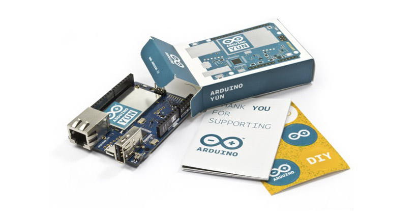 YÚN is the first member of a new groundbreaking line of Wi-Fi products that combines the power linux with ease of use of arduino. the ‘YÚN is similar to the arduino ‘leonardo’ (based on the ATmega32u4 processor) with a wifi system-on-a-chip running linino (a MIPS GNU/linux based on OpenWRT). a linux machine is embedded directly onto the PCB of the leonardo, and connected together so arduino can easily run commands on the linux side and use it as an ethernet and wifi interface. historically, interfacing arduino with complex web services has been quite a challenge due to the limited memory available. web services tend to use verbose text based formats like XML that require quite a lot or ram to parse. on the arduino YÚN, a ‘bridge library’ delegates all network connections and processing of HTTP transactions to the linux machine.