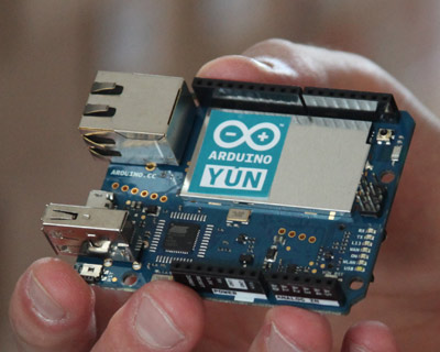 testing out the arduino YÚN at the manufacturing plant in turin, italy