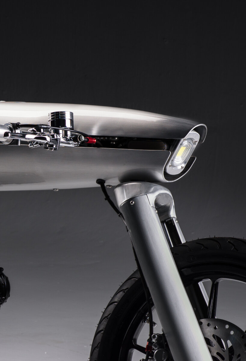 SOLARIS features retractable photovoltaic wings that form the core of the motorcycle's solar-harvesting system.