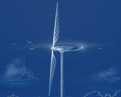 the new slim-line, two-blade turbine is less visible than the traditional three-blade design, to the extent that it is difficult to detect in the landscape, but it has also shown itself to be capable of functioning well in low-intensity wind.