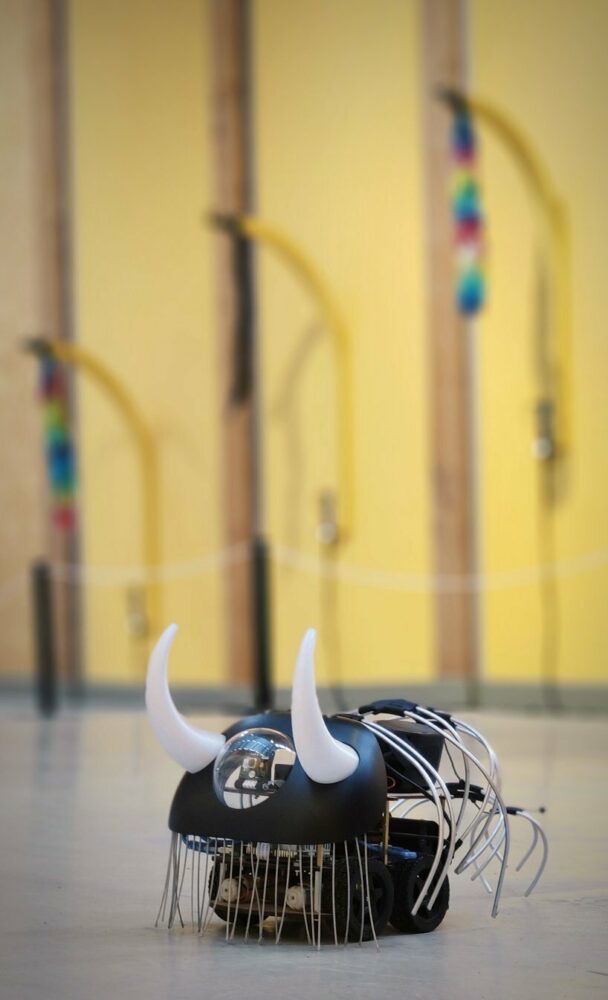 guillaume slizewicz drew inspiration from animals to create the robots, especially in terms of features (eyes, horns, fur, antenna, skeleton). slizewicz also joined forces with local designers who proposed their visions of what autonomous electronic life-forms will look like in the future. two teams of two designers were invited to create a ‘shell’ for the robots. paulineplusluis proposed a robotic jellyfish while côme rouanet and clément chaubet opted for a horned creature somewhere between a bull and a bantha.