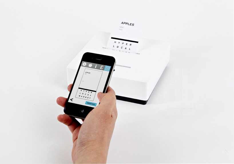 in fostering an exchange of products and information, ‘hyperlocal market’, an online food exchange platform by london-based designer and 2013 RCA graduate kayleigh thompson encourages the dialogue between buyer and seller, promoting local commerce. the system connects urban growers with fair and professional trade through an interactive website, which works together with a specially designed printer and smartphone application. the program initiates when one becomes a member of the ‘hyperlocal’ community, where users can upload, price and label their products with the app and sell them to a network of registered users. for more information about thompson’s ‘hyperlocal’ online market, see the video below: