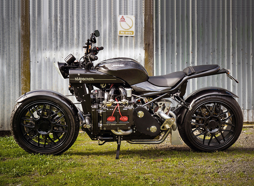the ‘mad boxer’ takes a subaru ‘WRX’ engine and pairs it with a kawasaki fuel tank, packing its ferocity in a bespoke shell. created marcel van hooijdonk, a new zealander toolmaker by trade, he has spent over five years blurring the genres between vehicles and has produced one of the most outrageous custom motorcycles.