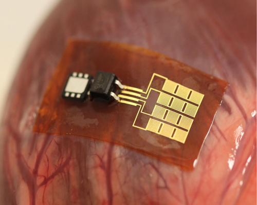 ‘heart rate monitors, pacemakers, cardioverter-defibrillators, and neural stimulators constitute broad classes of electronic implants that rely on battery power for operation. means for harvesting power directly from natural processes of the body represent attractive alternatives for these and future types of biomedical devices. here we demonstrate a complete, flexible, and integrated system that is capable of harvesting and storing energy from the natural contractile and relaxation motions of the heart, lung, and diaphragm at levels that meet requirements for practical applications. systematic experimental evaluations in large animal models and quantitatively accurate computational models reveal the fundamental modes of operation and establish routes for further improvements.’