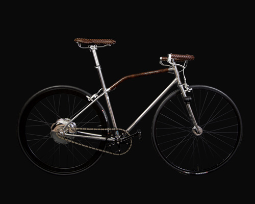 the limited edition pininfarina ‘fuoriserie’ electric bicycle is styled by the tailor-made cars of the 1930s and creates an elegant blend of modern and classical materials. the italian automotive company collaborated with 43 milano to enhance their experience and craftsmanship for bike manufacture. as its high-performance exclusive car referring name would suggest, the ‘fuoriserie’ is a blend of tradition and innovation. the booster system bike+ shows this by optimizing the cyclist’s energy through a miniaturized electric engine which enables them to cover longer distances. another advanced technology addition is the LED lighting and the ‘connect the plug system’ which recharges phones through the dynamo.