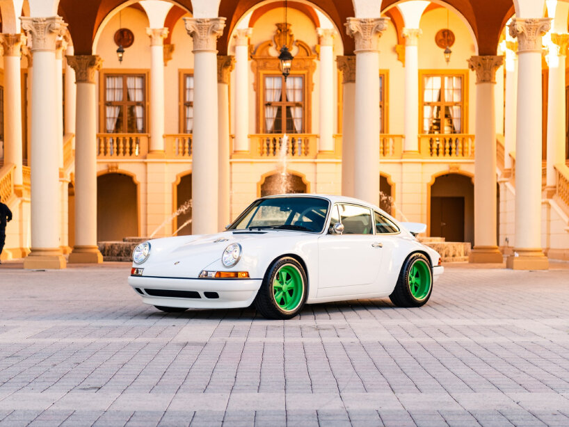 restored 1991 Porsche 911 sports car and its neon-like SR Green-finished Fuchs wheels