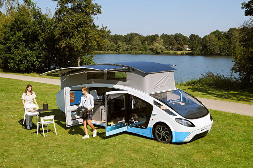 SOLARIS features retractable photovoltaic wings that form the core of the motorcycle's solar-harvesting system.