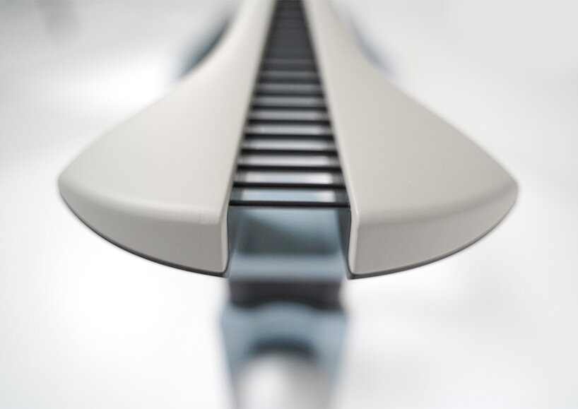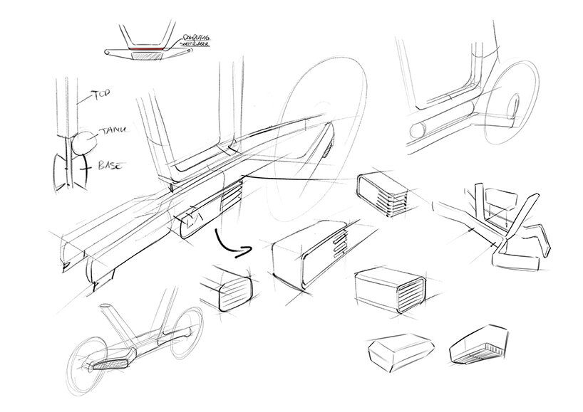 designed as a modular device, the bike is assembled like LEGO blocks and runs on LAVO’s pioneering hydrogen battery made up of fuel cells that produce power via solar energy and water. each battery unit holds a capacity of 40kWh, and can be customized for home or business use. dubbed ‘green hydrogen’, this energy system is envisioned to become an alternative to ‘grey’ and ‘blue’ hydrogen — derived respectively from fossil fuel and methane. the road to fully clean energy is a long one, but potential is already taking shape.