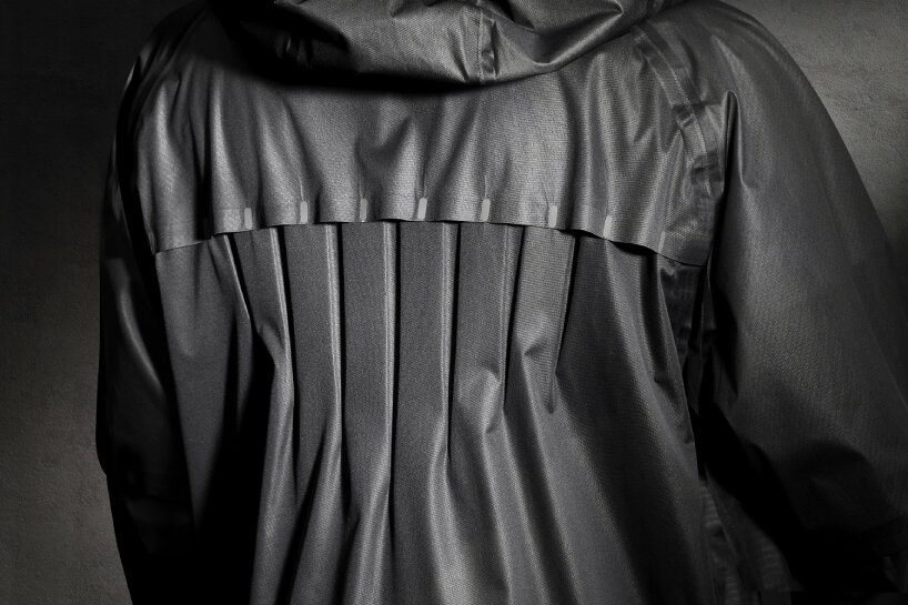 These thermal-regulating materials for apparel can also just be a film; a moisture-reactive film to be exact. That is how NIKE did it with its Aerogami jacket. The brand has incorporated automatic air vents into the jacket’s design, enabling it to cool down the body temperature of runners while they jog. These vents, which resemble creases and folds across the jacket, open up when sweat accumulates against the runner’s skin to allow airflow and prevent sweating. As the body cools down and sweat dries, the vents automatically close to seal in warmth. NIKE’s Aerogami technology is powered by a moisture-reactive film applied to the vents, which autonomously contracts and expands in response to sweat.