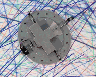 conceived with capabilities to crawl on interior walls, take walks on buildings and explore the city in a way humans can’t, the ‘vertwalker’ by berlin based creative studio sonice development is a robot that can easily maneuver on vertical surfaces. when equipped with a marker, the small device is transformed into a mechanized scaling painter that creates scattered lines across individual planes, producing one-of-a-kind large scale pieces of art. the robot is constructed with foam boards, sensors and custom electronics to help it move freely on any wall and is currently on display for the red never follows’ exhibition at the saatchi gallery london until september 1st 2013.