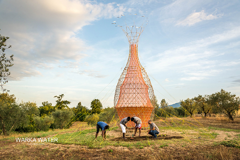 to collect potable water from the air, the team has developed several structural concepts and constructed 12 full-scale prototypes to test different materials within varying environmental conditions. dubbed warka tree, the vertical structure collects rain, harvests fog and dew and delivers 40 to 80 liters (10 to 20 gallons) of drinking water every day.